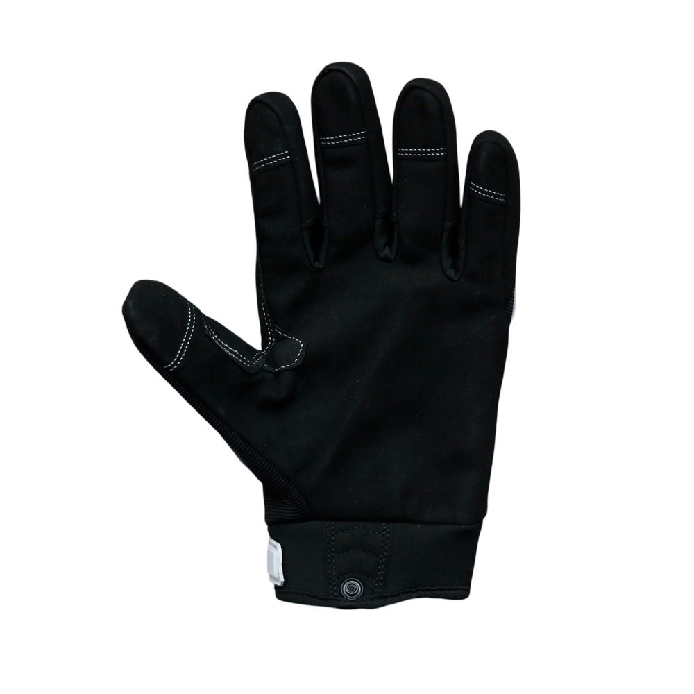 Тыльная сторона перчатки выполнена из водооталкивающего материала со вставками из термопластичной резины.