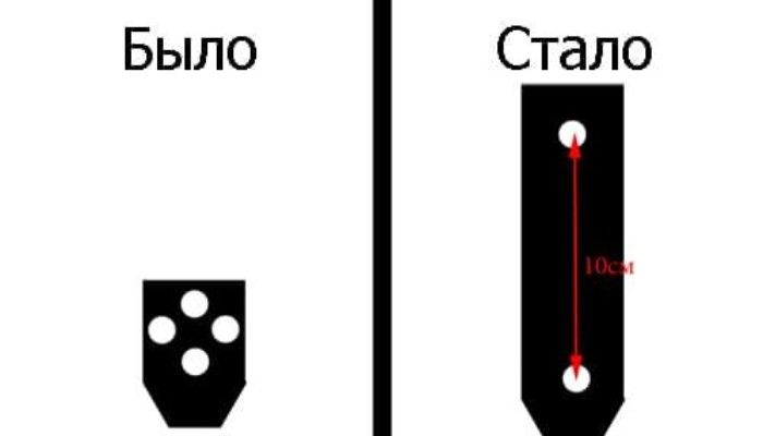 В связи с этим мы приняли решение внести изменения в крепежную платформу, увеличив расстояние между болтами и убрав лишние отверстия. На картинках ниже наглядно изображена разница между предыдущей партией турников и новой: