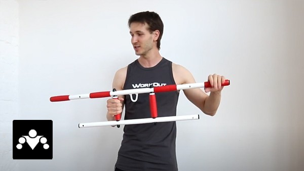 Первым шагом мы будем собирать основной узел турника, состоящий из короткой и длинной перекладин, а также из нейтрального хвата. Главным отличием этой перекладиной от предыдущей модели является наличие полукольца с внутренней стороны, на который можно повесить грушу, резиновые петли или гимнастические кольца в зависимости от вашего желания. Мы также увеличили количество резиновых ручек для разных вариантов хватов с 4 штук до 6 штук, благодаря чему появилась возможность подтягиваться узким-средним хватом сверху. В итоге, уже через пару минут сборки основной узел готов: