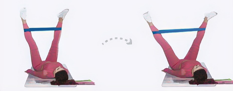 - Синяя резинка для тренировки должна располагаться посередине голеней.